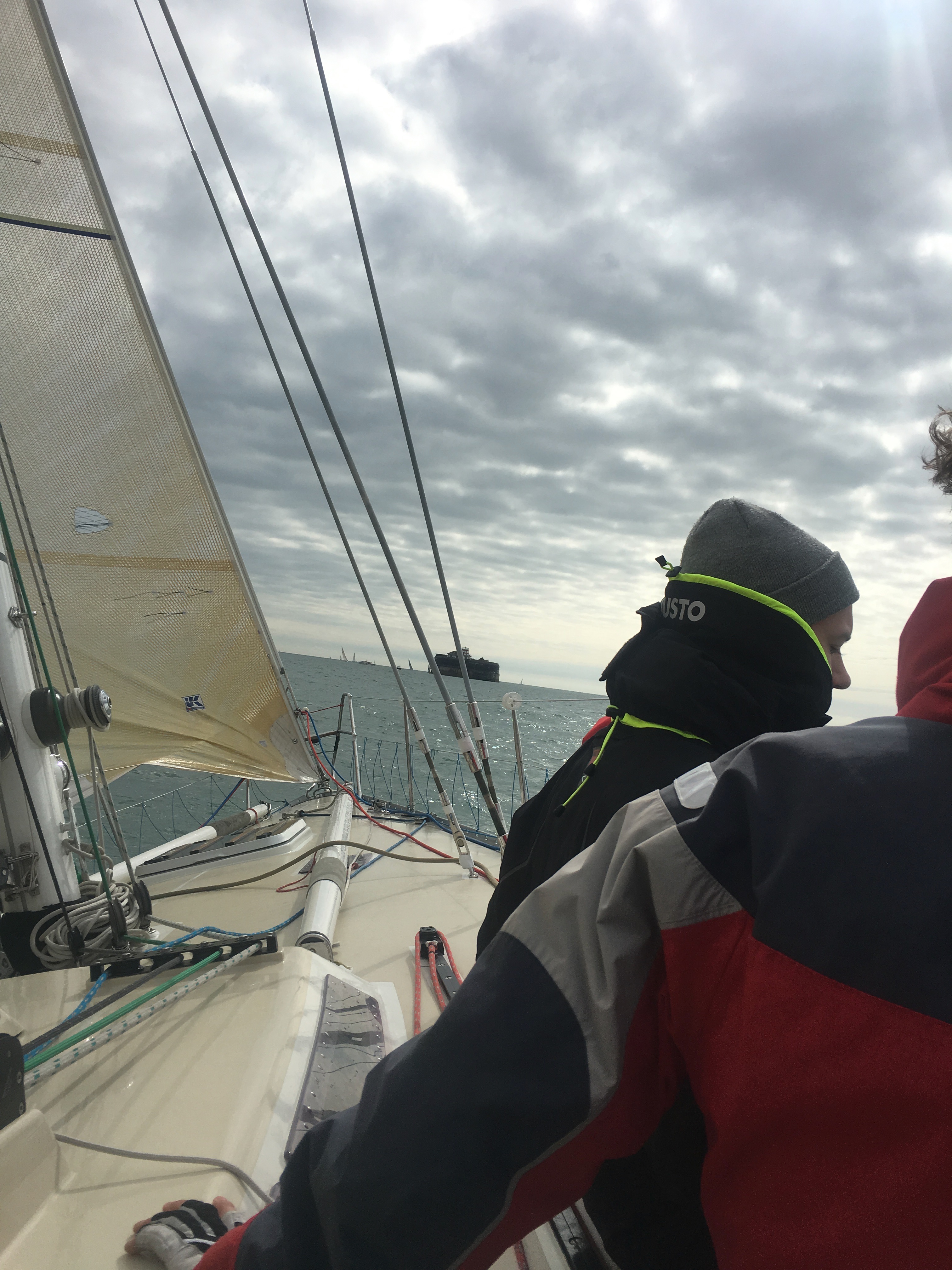 We kept on sailing high towards Outer Owers, but in the end, it the wind turned right and a couple of tacks were needed, to reach the mark. Fortunately, we had foreseen this and we were positioned on the right (hand) side of the fleet.