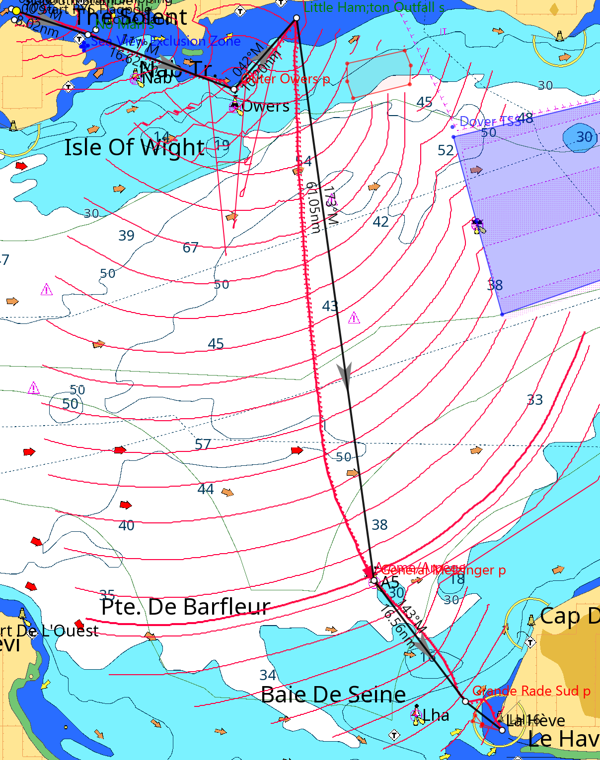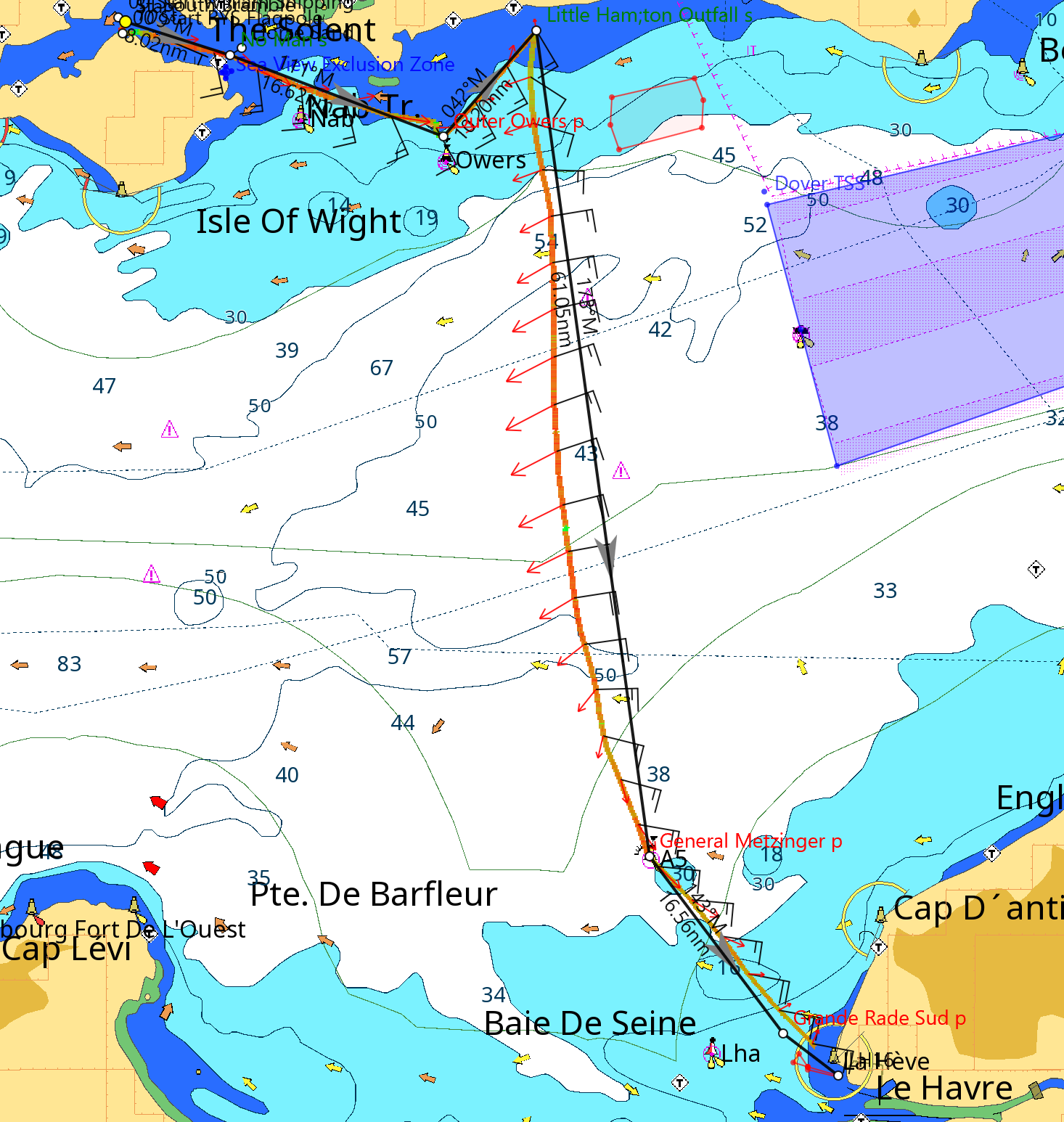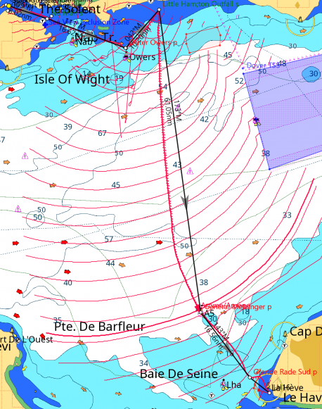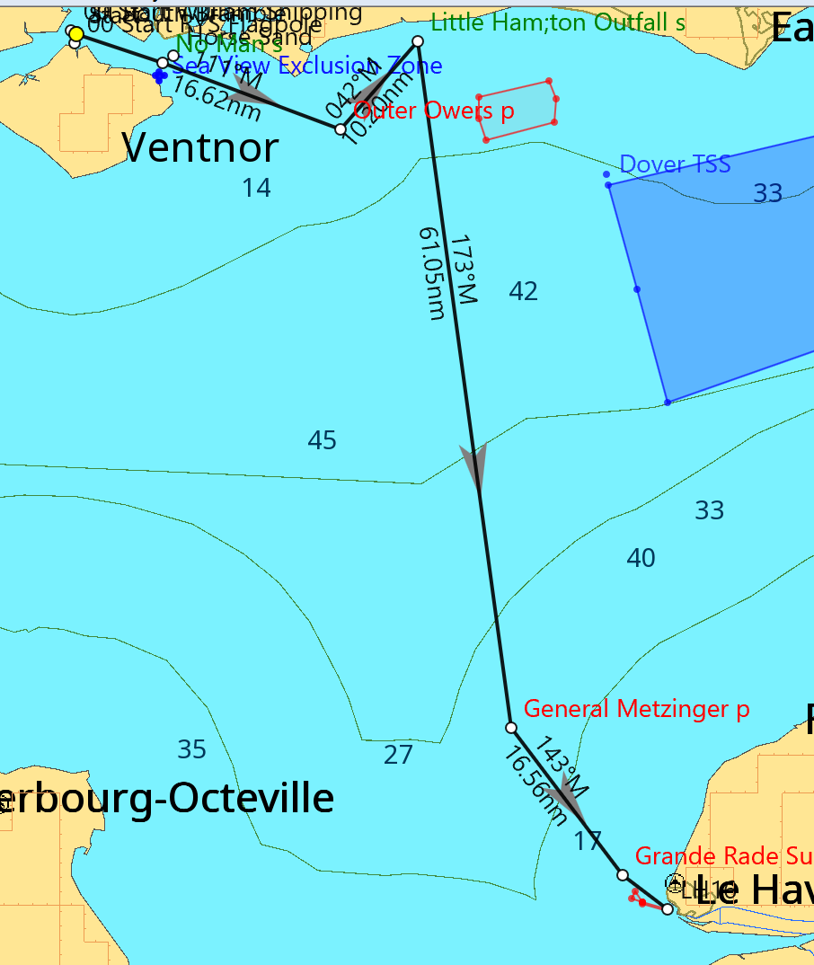 With the present weather forecast that would mean a fetch out of the Solent, a reach towards the mainland shore, another fetch to cross the Channel, with possibly a (proper) beat at final 4 miles.
